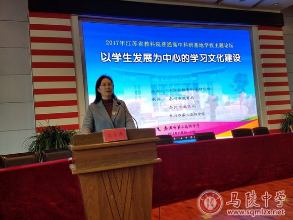 2017年11月26-27日,由江苏省教科院主办,泰州市教育局、泰兴市教育局和泰兴市第三高级中学承办的“以学生发展为中心的学习文化建设”主题论坛活动在泰兴三高隆重举行,全省52所基地学校以及特邀的泰州市内10多家学校共300余人参加了本次论坛,我校党委书记张美华、课程中心副主任李明、后勤中心主任王崇等组团参加了本次主题论坛活动。