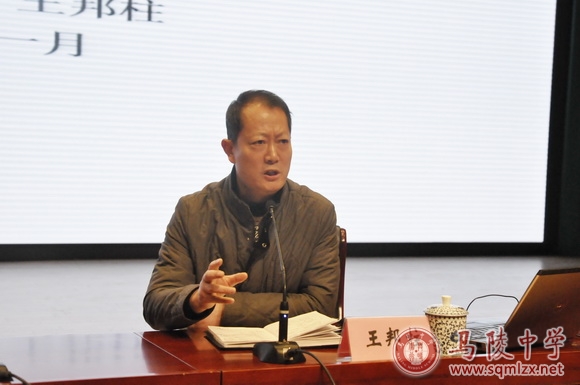 王邦柱首先对刘小利在全校一线老师都参与的这样宏大的场域下执教公开课的勇于担当精神给予了充分肯定,对这节公开课的亮点给予了精彩点评,同时也提出了几点商榷意见。王邦柱结合对各名校的考察和自身体会,对全体老师提出了几点建议:不要担心学生受不了;不要怀疑学生的自学能力;不要降低教学规范要求;不要高看自己。