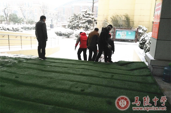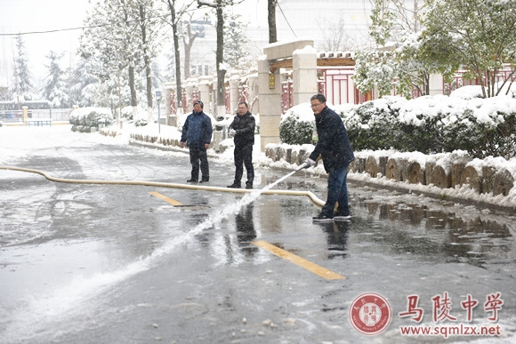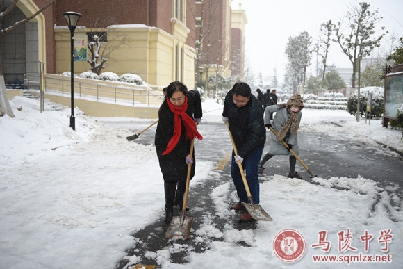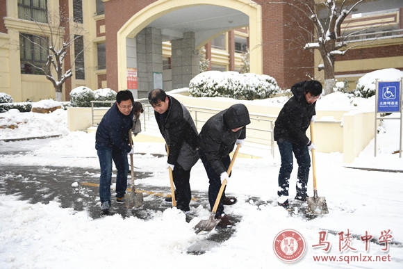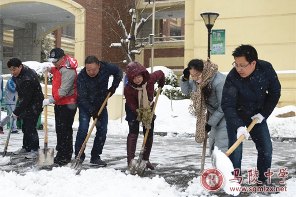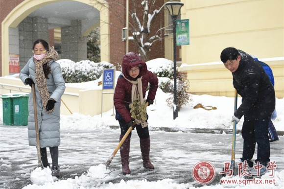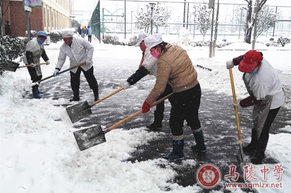瑞雪兆丰年,陵中万象新。一场大雪给美丽的校园增添了2018年的新气象,带来了银装素裹的新美景,但同时也为师生的出行安全带来了隐患。为了确保师生在校安全和教育教学的正常进行,元月4日中午,在校长王丽梅、校党委书记张美华等学校领导的带领下,我校教职工积极热情地投入到扫雪活动之中。