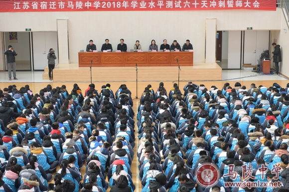 1月15日下午,高二年级全体师生在体育馆隆重举行马陵中学2018年学业水平测试60天冲刺誓师大会。会议由副校长杨忠平主持。