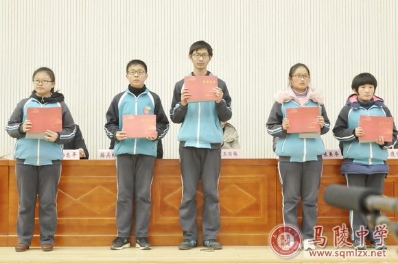 第一项议程:高二年级二部年级主任朱卫宣读了在12月份学情调研中获得特等奖和一等奖的学生名单,希望全体同学以获奖同学为榜样,不断进取,力争在小高考中取得自己应当取得的最好成绩。接着,与会领导为获奖学生颁发证书和奖品。