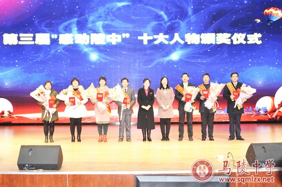 在温馨的音乐声中,全体教职工聆听了感动陵中十大人物事迹介绍。在激昂的音乐声中,校领导为感动陵中十大人物颁奖。