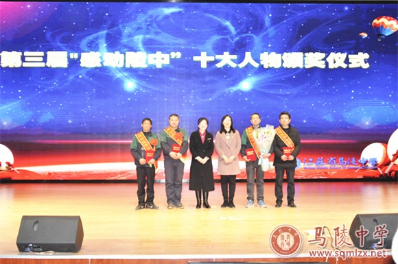 第一阶段,表彰先进。党委委员、副校长朱春伟宣读感动陵中十大人物表彰决定。授予米新宇、李明、马品敢、倪士武、徐美荣、闫长娟、仲晓娟等七位同志“‘感动陵中’人物称号”,授予高二年级英语组、校水电班、保安团队“‘感动陵中’团队奖”。