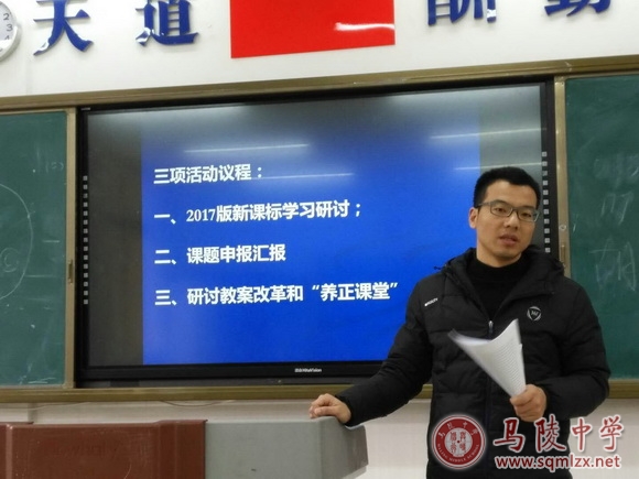 本次活动主要有以下几项内容:学科中心副主任对期初“养正课堂”教案检查情况进行反馈;学科教师将各自微专题、课题等研究成果在学科中心内以讲座的形式进行汇报;研讨学科养正课堂模式的建构;新课程标准解读。