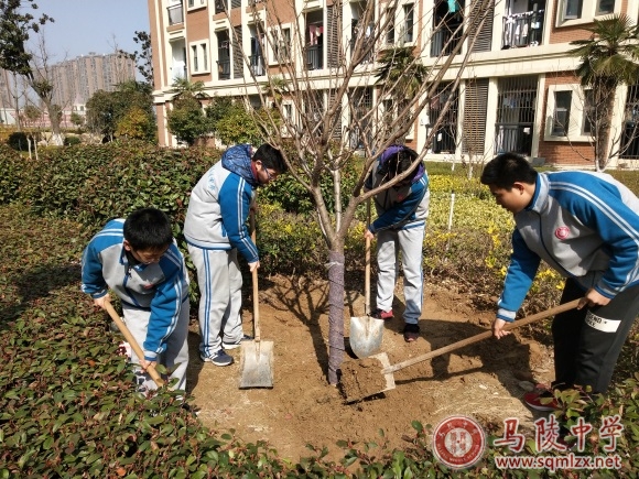 活动最后,大家齐心协力,共同栽种樱花树。这棵樱花树是全体成员集体赠送给母校的植树节礼物,并命名为“团青树”。同学们表示以后一定会细心呵护此书,让这棵小小的樱花树陪伴马陵中学的学子们一起茁壮成长。