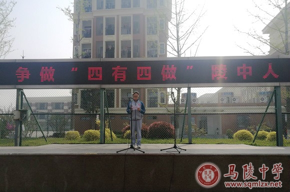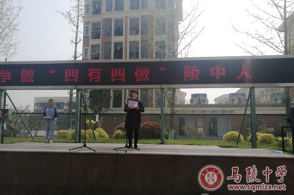 升旗仪式由高一(9)班陶敏主持,学生代表夏朗作国旗下演讲,她表示:爱国对中学生来讲,首先应该落实在日常的生活上、学习上,积极把意识化为行动,争做“四有四做”陵中人。