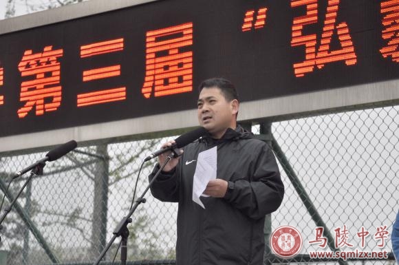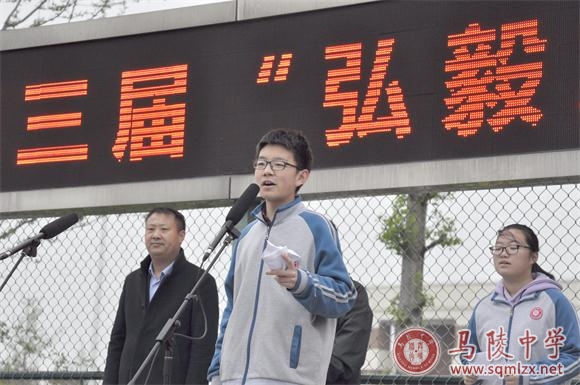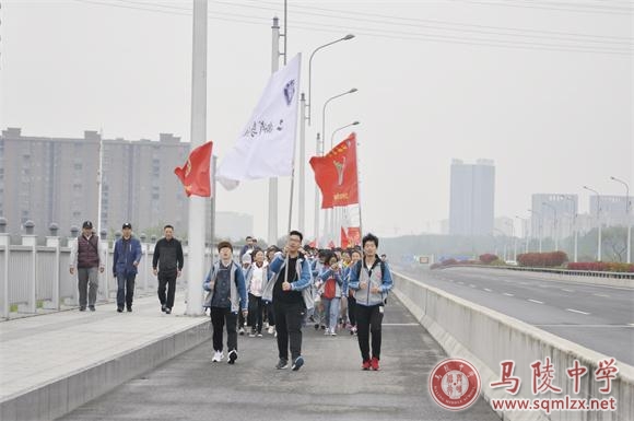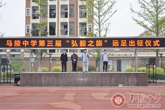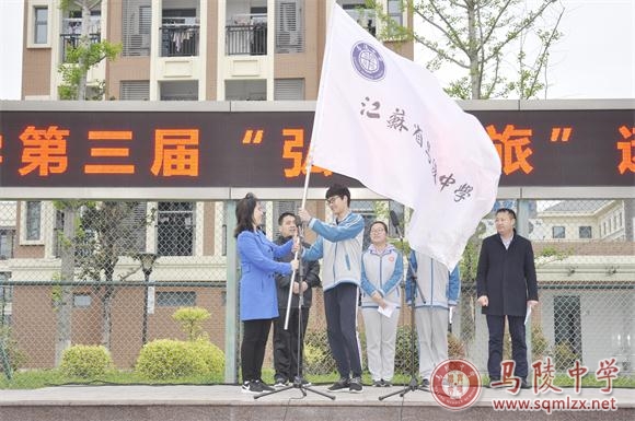 党委书记张美华为此次活动授校旗,宣布马陵中学第三届"弘毅之旅"远足活动开始,并为同学们壮行。