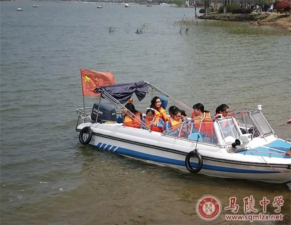 我们坐上小艇,奔驰于湖面,水天一色,春风吹来,多么惬意啊。