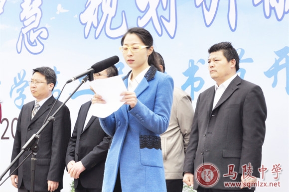 在一阵阵响亮的礼炮声中,王丽梅激情洋溢地宣布马陵中学第二届读书节正式启动,她呼吁广大师生捧起经典之书,让读书成为习惯,让书香溢满校园,让书香润泽人生。