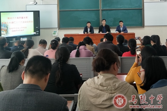 5月10日,马陵中学高二年级组召开“推动六个高质量发展”大学习、大调研、大讨论活动动员会议。动员会上,杨忠平副校长带领全体老师认真学习《市委教育工委关于开展“推动六个高质量发展”大学习、大调研、大讨论活动的通知》文件精神,通过学习,全体高二年级教师明白了“六个高质量发展”的概念,明确了“六个转向”的实质内容,以及开展大讨论活动的重要意义。