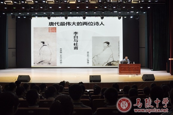 接着,南京大学文学博士、助理研究员赵庶洋教授以《唐朝最伟大的两位诗人——李白与杜甫》开讲,为学生们展现了课本之外的“诗仙”与“诗圣”。一小时的精彩授课,在座学生无不悉心聆听。讲座结束后,学生们纷纷将自己困惑的问题写在纸条上,现场向赵教授提问,他耐心地一一作答,现场互动气氛热烈,引发共鸣。