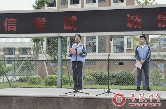 高三(6)班王苏婉同学做了题为《诚信高考,诚信做人》的国旗下演讲。“三杯吐然诺,五岳倒为轻”,“若有人兮天一方,忠为衣兮信为裳”,她号召高三学子做人、学习要以节操为本,以诚信为基,传承民族美德,在高考考场上发挥自己的真实水平,守住内心的一份坚持,交出一份合格的诚信答卷。