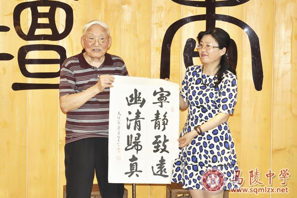 张守礼先生再次向母校赠送了自己珍藏的书籍、题字、信件等珍贵物品。我校学子现场书写了“云鹤千年寿 苍松万古青”祝福语赠送给张守礼先生。交流活动温馨美好,现场不时传来阵阵掌声。