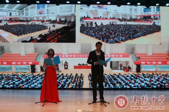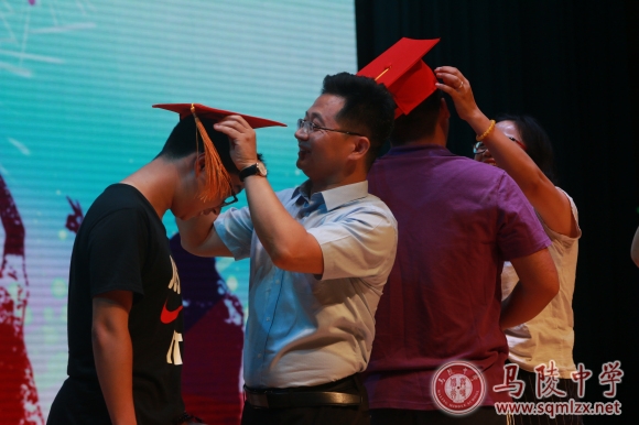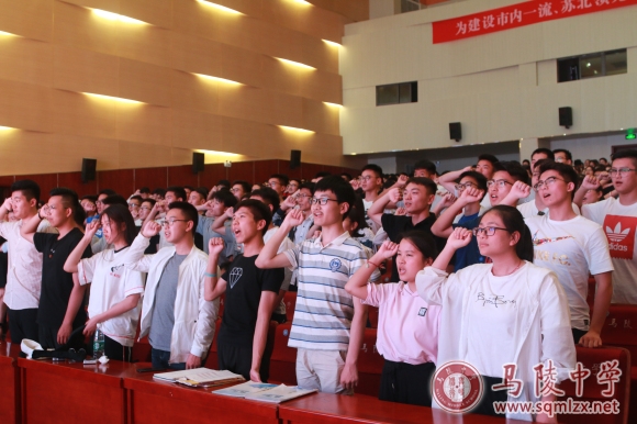 6月23日下午,马陵中学报告厅内欢聚一堂,2018届高三毕业典礼正在举行,校领导班子成员、全体高三师生及部分家长参加典礼。