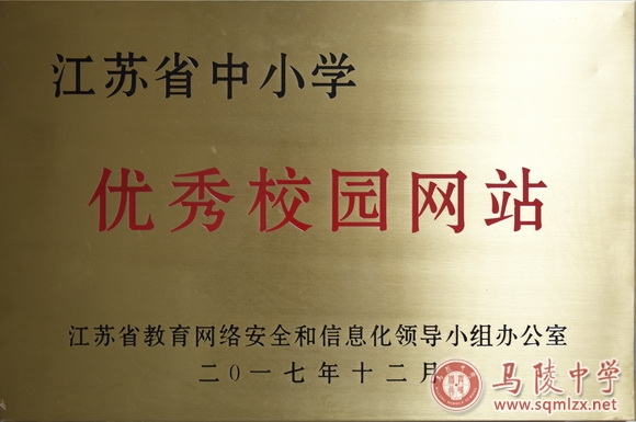 为推进全省中小学教育信息化建设与应用,大力提升“三通两平台”建设水平,进一步规范校园网站的管理,根据《关于开展2017年江苏省中小学优秀校园网站评比活动的通知》(苏教信办〔2017〕14号)要求,各市、县(市、区)认真组织、积极发动,经过省级专家评审,我校网站荣获“江苏省中小学优秀校园网站”称号。