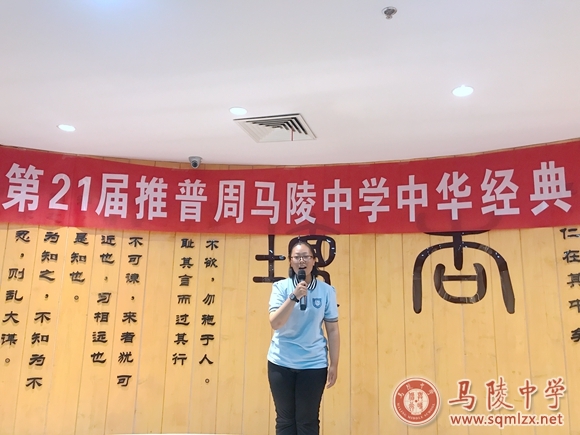 2018年9月10日至16日,是第21届全国推广普通话宣传周,本届宣传周的主题是“讲好普通话,迈进新时代”。为积极响应本届宣传周大力推行和规范使用国家通用语言文字,提升国民语言能力,传承弘扬中华优秀传统文化,为建设与综合国力相适应的语言文化强国、全面建成小康社会提供有力支撑的指导思想,我校举办了系列活动。9月14日,由学校课程中心和高一年级组联合举办的与经典相遇——马陵中学全国第21届推普周中华经典名家名篇诵读会在校儒学馆精彩上演。
