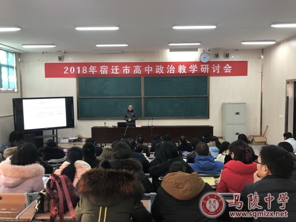 为了有效做好全市2019届高三年级政治复习备考工作,进一步探讨和建构高一、高二年级高效课堂,强化学科核心素养培养,2018年12月14日,宿迁市高中政治教学研讨会在我校举行,来自全市各县教研室高中政治教研员及全市政治骨干教师共90多人参与了此次活动。