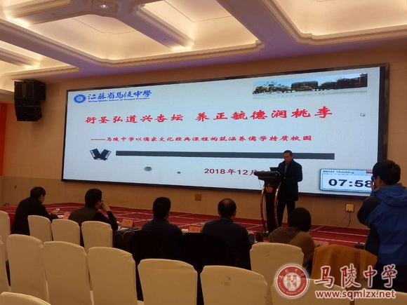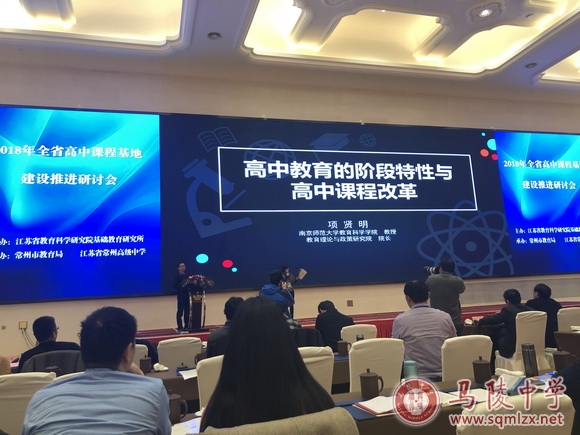 12月19-21日,2018年江苏省普通高中课程基地建设推进研讨会在常州市举行。本次活动由江苏省教科院基础教育研究所主办,常州市教育局承办,江苏省常州高级中学协办。省教育厅基教处处长陆岳新、省教科院副院长王国强、省教科院基础教育研究所副所长倪娟等领导和华东师范大学、南京师范大学、深圳教科院基础教育研究中心、浙江省台州市教研室的专家以及来自全省高中课程基地学校的校长、项目负责人等400余人出席了本次活动。我校代表参加了研讨会并作为宿迁市发言的三家代表学校之一在会上作专题发言。