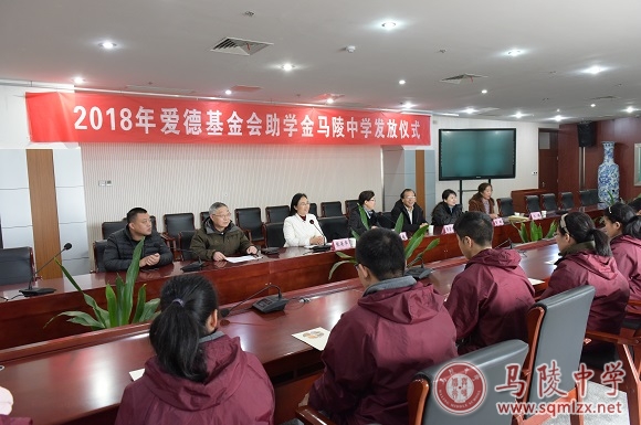 12月27日上午,2018年度爱德基金会马陵中学捐资助学仪式在养正楼九楼会议室举行。参加捐助仪式的有省民建领导、省爱德基金会专员曹琳、何佳乐两位老师,宿迁市民建主委、市政协副秘书长张雷冲,市民建副主委、宿豫区司法局副局长汪鹏。我校校长王丽梅、党委书记张美华、学生处主任徐兴甲等同志出席了这次捐助仪式。