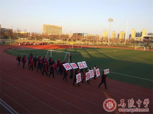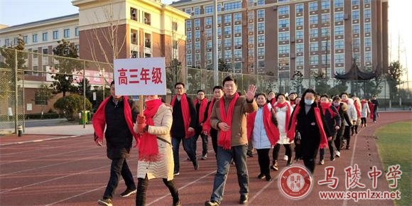 在校领导及各部门主要负责人组成的旗舰队的引导下,全校300余名教职工组成的队伍浩浩荡荡,沿着学校操场昂首阔步,迈进崭新的2019。