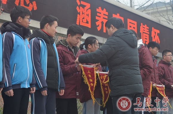 最后,学生处依据《马陵中学常规管理检查办法》,授予2018年12月份常规检查中表现突出的班级和宿舍“文明班级”“文明宿舍”荣誉,副校长褚俊清向获奖集体颁发流动红旗。