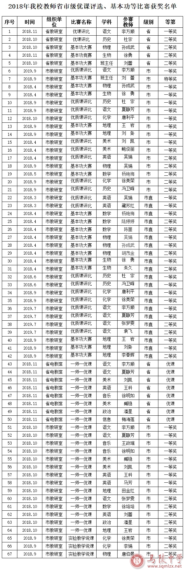 教师是学校发展和学生成长的核心竞争力。2018年在全体教师的共同努力下,马陵中学教师发展成绩喜人。这一年,学校被评为江苏省教科研先进学校,杨忠平、董波林两位老师被评为江苏省教科研先进教师。