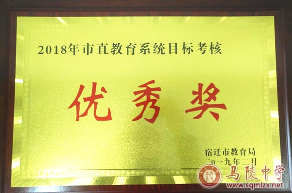 在2月16日举行的宿迁市教育工作会议上,我校荣获2018年市直学校目标考核优秀奖。