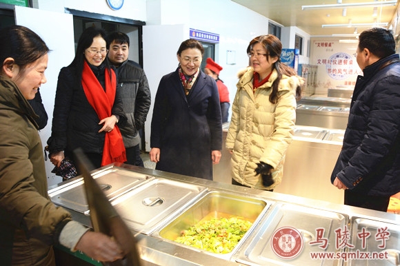 2月18日上午,市政府教育督导室主任、市委教育工委副书记骆敏一行冒着严寒大雪莅临马陵中学,检查指导学校开学工作。