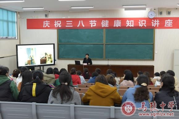 表彰结束后,市第一人民医院康复科主任苏宁为全校女教工带来 “健康知识讲座”。全校女教职工认真倾听并与苏宁进行了互动交流。讲座让大家感觉到只有拥有好的身体,才能更好地投入到学习、工作和生活中去。