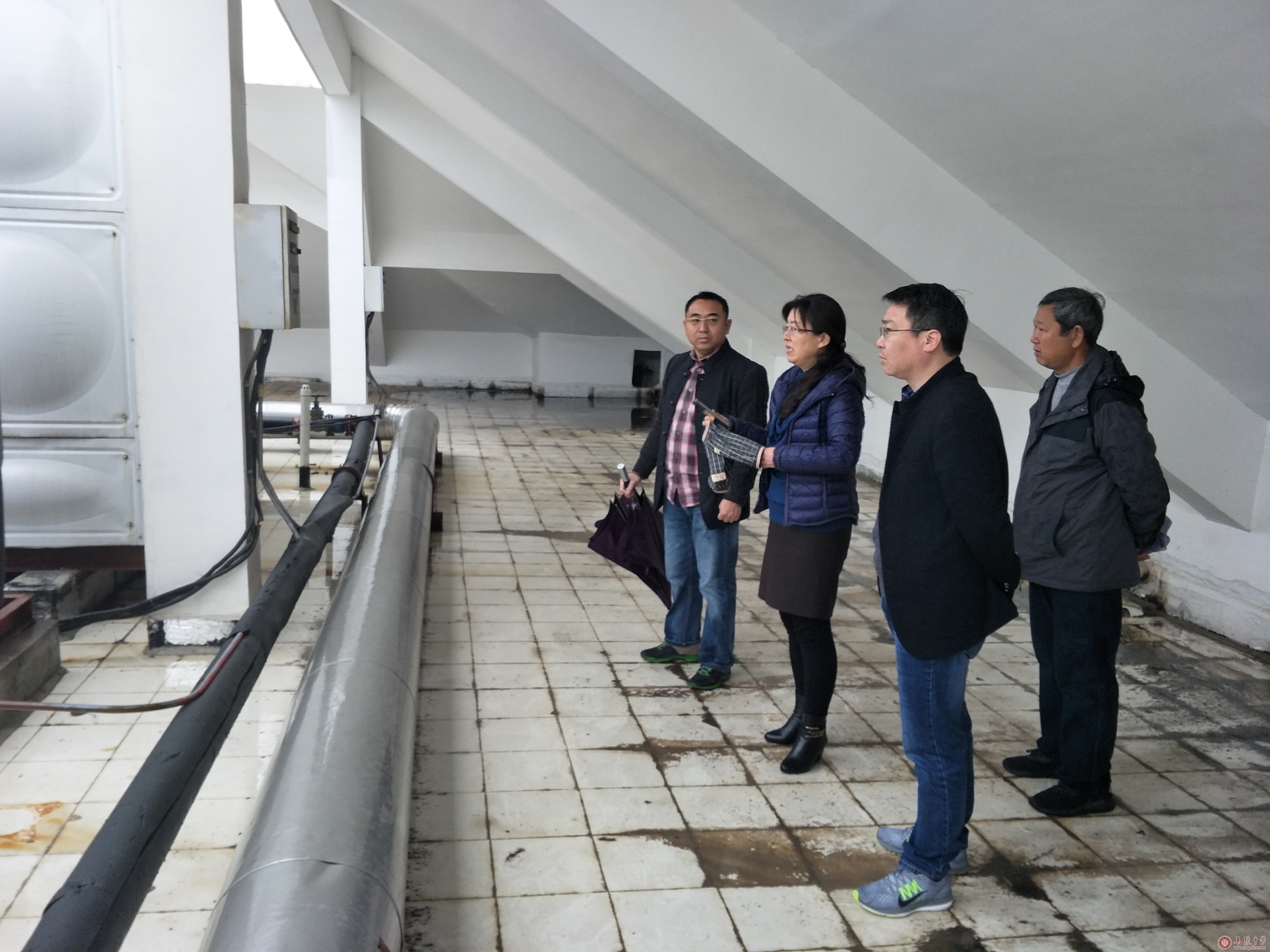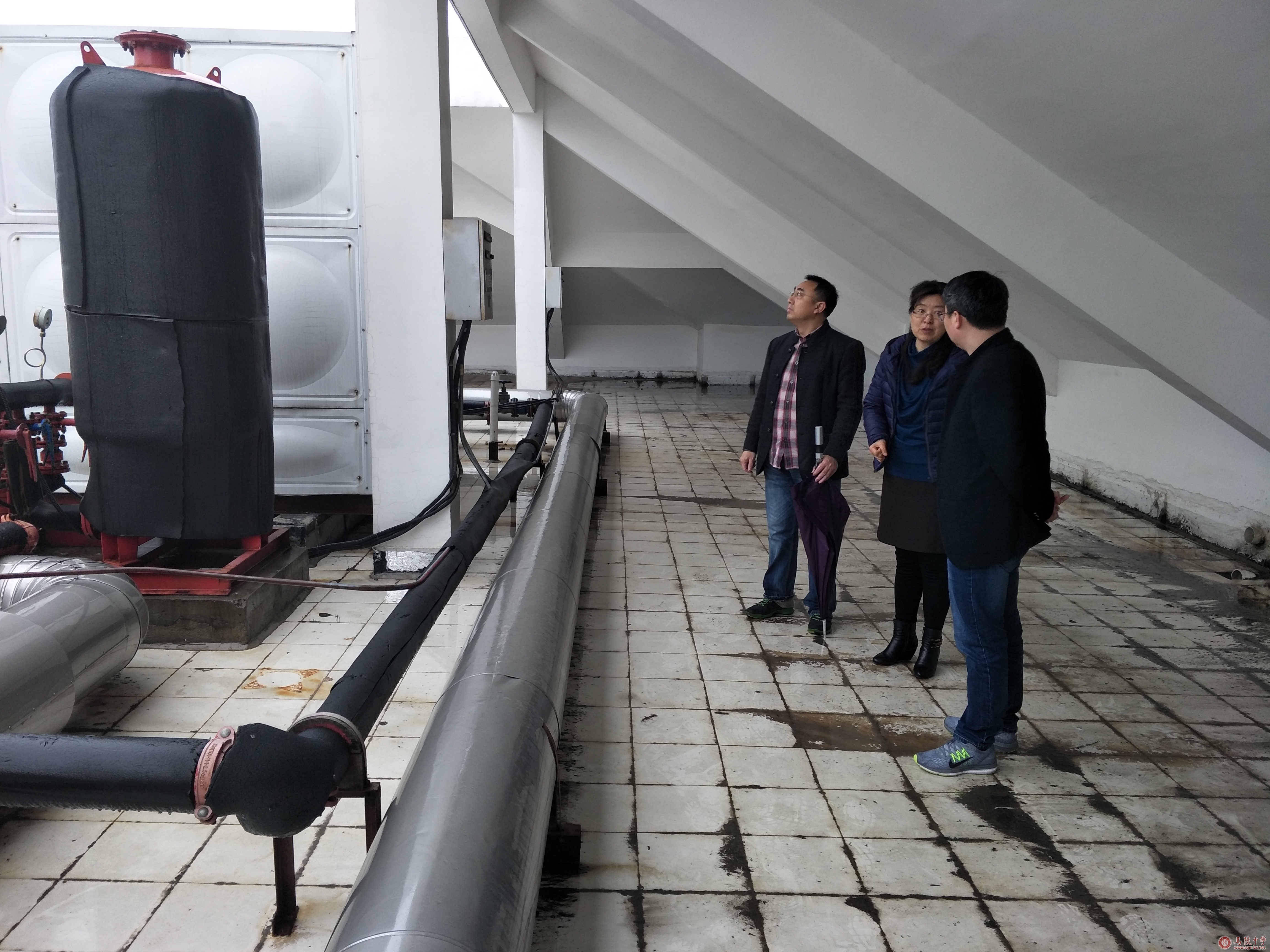 王丽梅在养正楼顶现场会办了如何解决养正楼顶漏水,中央空调主机设备,消防设备保护等问题,现场指示后勤服务中心尽快邀请专业人士论证养正楼封顶,体育馆修漏的方案及预算;同时要严格执行校舍日常保养制度,完善检查保养记录,排查校舍安全隐患,防患于未然。