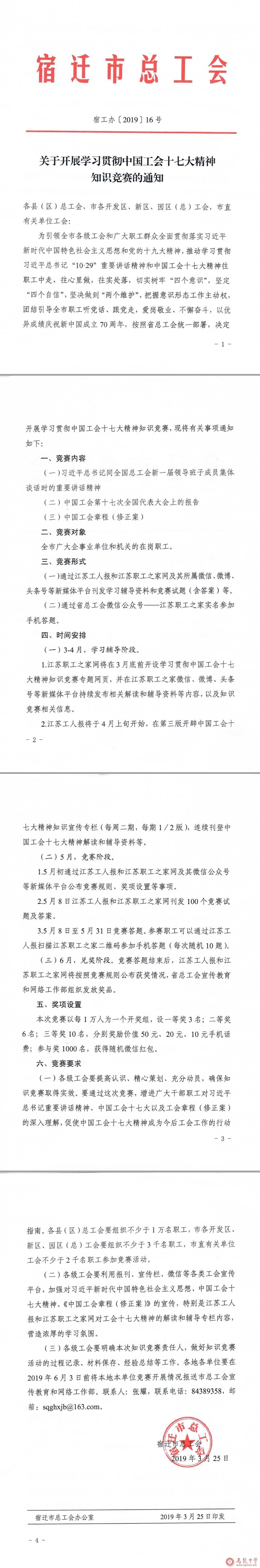 关于开展学习贯彻中国工会十七大精神知识竞赛的通知