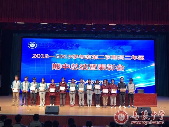 米新宇宣读了高二年级期中考试表彰决定,并公布了在本次考试中获得一等奖、二等奖、三等奖的同学名单,年级领导为获奖学生颁发了获奖证书和校长奖学金。