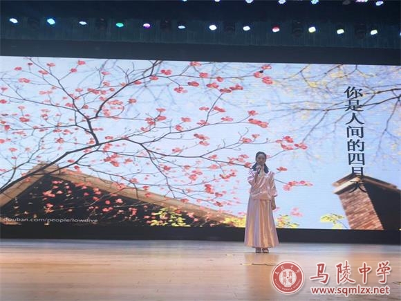 高一(10)班姜霁纯吟诵林徽因的《你是人间的四月天》,宛如一阵清新的风,既不甜腻,也不灼热,温暖而纯净,绵软而轻柔,让人从心底感受到一种愉快和舒适。