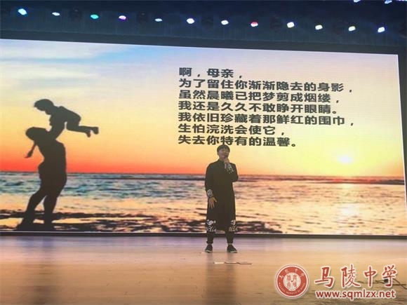 雨果曾说:“慈母的胳膊是由爱构成的,孩子睡在里面怎能不香甜?”高一(9)班吕丹丹深情朗诵舒婷的《啊,母亲》,一曲蘸着浓浓亲情抒写的母爱赞歌,炽烈而深沉。