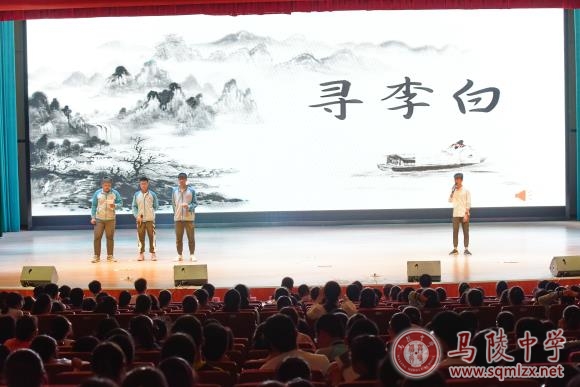 一起走过了那段屈辱的岁月,那段血与火的历程。高二(15)班的蔡博和高二(17)班的丁柯寓、朱靳、张世凯,带领我们穿越千年时光,跟着余光中先生一起去《寻李白》。