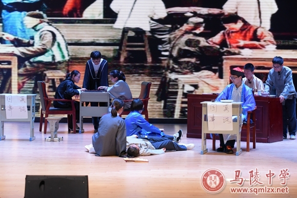 当晚的闭幕式,以大气磅礴的师生表演唱《我和我亲爱的祖国》开场。接着各项活动的优秀作品进行了集中展示,如高二(12)班李笑颜同学的经典诵读吟唱《木兰诗》,展现出巾帼不让须眉的风采;高一(14)班李睿、宋佳慧至等同学的课本剧《茶馆》,精彩的诠释了中华文学艺术经典;高一、高二辩论队以家庭和事业为题,唇枪舌剑 各抒己见,展示出新时代高中生风采……精彩的演出,引起全体师生的阵阵喝彩和热烈的掌声。