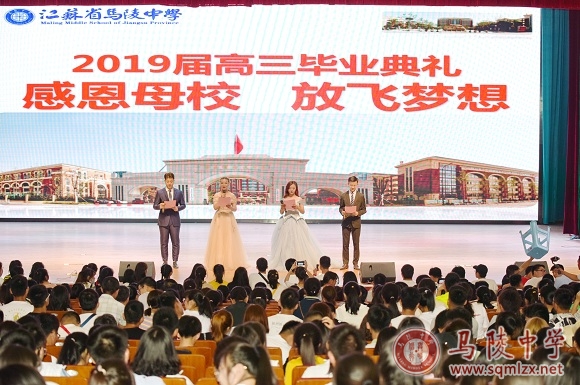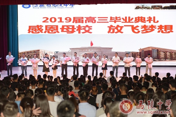 6月24日上午10点,马陵中学在校艺术楼一楼举办以“感恩母校 放飞梦想”为主题的2019届高三毕业典礼。马陵中学校长王丽梅、党委书记张美华、副校长杨忠平、副校长汪德强、副校长褚俊清、党委副书记程允标、副校长张丽华、工会主席袁金花、高三年级管理处领导、全体高三师生及部分家长参加典礼。