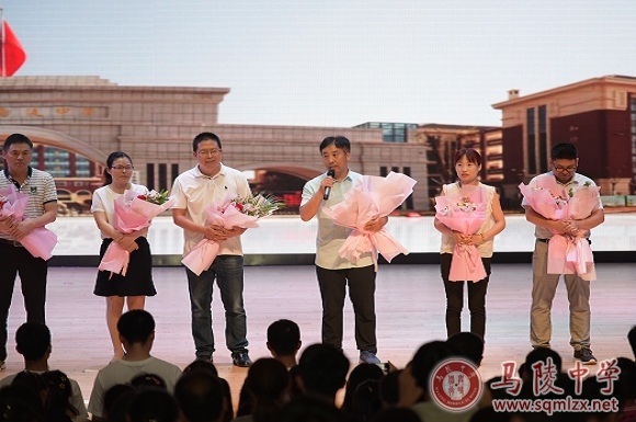 同学们的成长少不了如父母般的班主任的关怀和指导。一道走过三年的酸甜苦辣,一千多个日日夜夜,老师们同样是在风雨兼程,奔忙于每一个清晨与黄昏,顾不上欣赏旭日和夕阳留给大地的美景。三年苦行生涯,老师们一如既往,用热情和智慧点亮了每一缕曙光。同学们怀着最诚挚的敬意向自己的班主任老师献上了鲜花。班主任代表们红着眼眶向即将开启新的人生旅程的孩子们给予祝福。