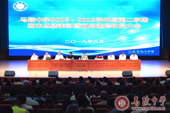 6月30日下午,马陵中学召开2018-2019学年度第二学期期末总结表彰暨双向选聘动员大会,全体教职工参加了会议。会议由校党委书记张美华主持。