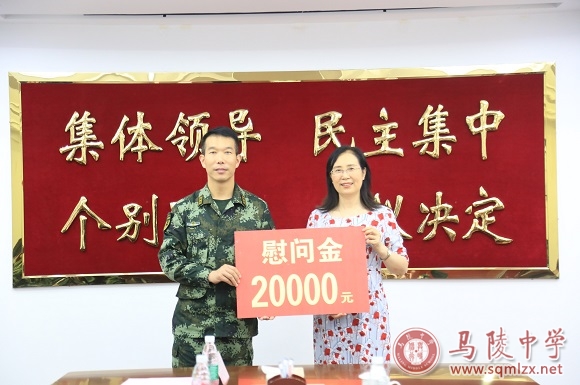 张美华首先向全体官兵致以节日的问候和崇高的敬意,感谢他们在学校军训和国防教育等方面所作出的贡献,并送上节日慰问金。