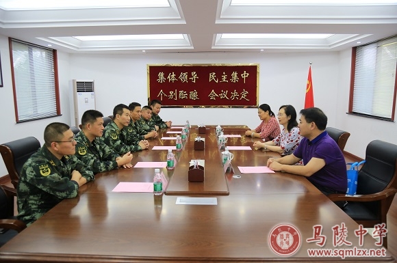 晏龙对学校领导的到来表示欢迎和感谢,对学校在国防建设和教育方面所作的努力给予了充分肯定,并代表武警宿迁支队感谢学校为支队提供的心理团体辅导等支持服务。