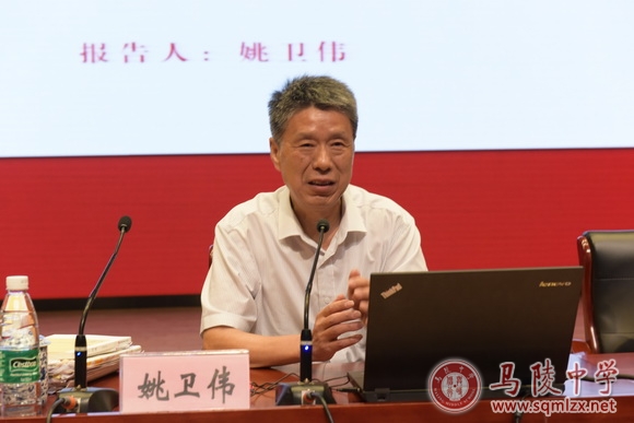 下午,著名教育专家、中国语文报刊协会副会长、江苏教育出版社编审、《全国优秀作文选》主编姚卫伟教授来到我校给全体教师带来了一场题为《感受大师,走进“师道”》的讲座。他的报告聚焦足以影响中国近现代教育史的16位大师级人物,通过展现大师的生命品格,让听课教师获得“师道”启示;同时,他还向全体老师分享了自己的教学体会。十六位大师人格高尚伟大、学问精深博大,让在场老师油然而生心向往之的美好情感及遇见后的追随冲动。在教学经验分享时,他提出上课内容要实在,过程要好听,效能要可验。谈到备课,他送给各位老师两个字“鸟瞰”,视野要宽。姚卫伟分析2017、2018、2019三年的全国各省高考作文题,认为一共有四个类型,第一种类型是时代潮流,第二种类型是生命意义,第三种类型是社会选择,第四种类型是生活哲理。对于复习,他提出要进行轻量化设计、模块化集成和清单式操练。