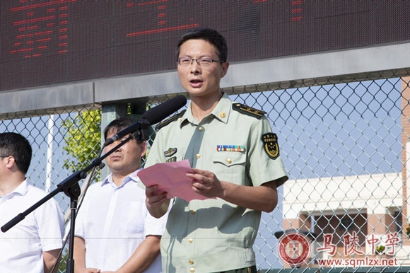 仪式期间,武警宿迁支队政治处副主任吴雷雷代表武警宿迁支队对真正成为马陵中学学子的1200多名高一新生表示恭喜,并对为军训工作倾注大量心血的学校各级领导和老师们表示感谢。