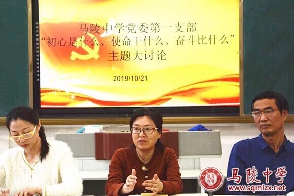 为抓好抓实“不忘初心、牢记使命”主题教育学习研讨,深化广大党员干部对主题教育“十二字”总要求的理解把握,深入推进学习贯彻习近平新时代中国特色社会主义思想往深里走、往心里走、往实里走,10月21日下午,马陵中学党委组织“初心是什么、使命干什么、奋斗比什么”专题讨论活动。