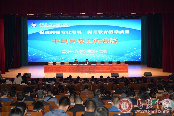 10月22日下午,我校在艺术楼报告厅召开“促进教师专业发展,提升教育教学质量”主题月度工作会议,全体教师参加了会议。本次会议由校党委书记张美华主持。