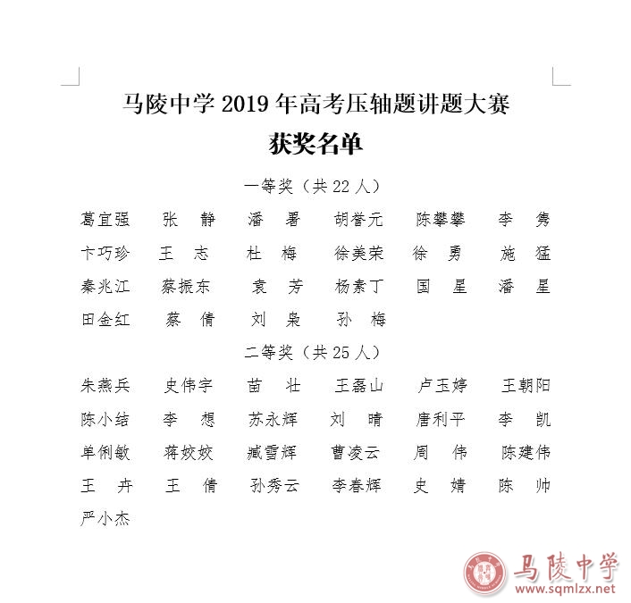 马陵中学2019年高考压轴题讲题大赛获奖名单