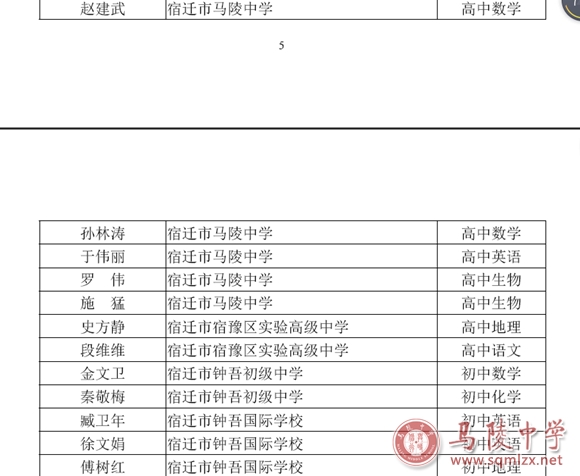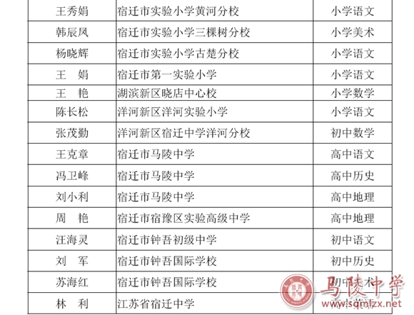 我校在市教研室组织举办的市优秀教研组长、备课组长评选活动中喜获佳绩。王克章教授,冯卫峰和刘小利组长被评为宿迁市优秀教研组长;赵建武、孙林涛、于伟丽、罗伟、施猛组长被评为宿迁市优秀备课组长。充分彰显了我校学科组长风采!