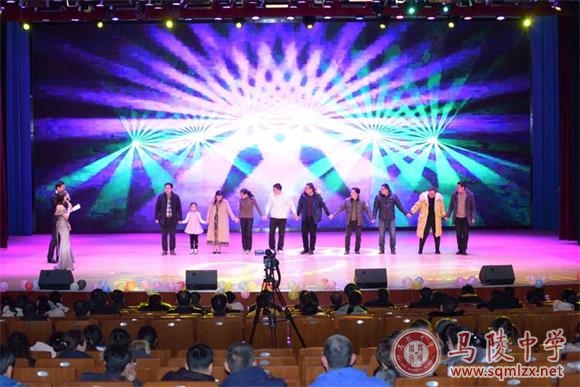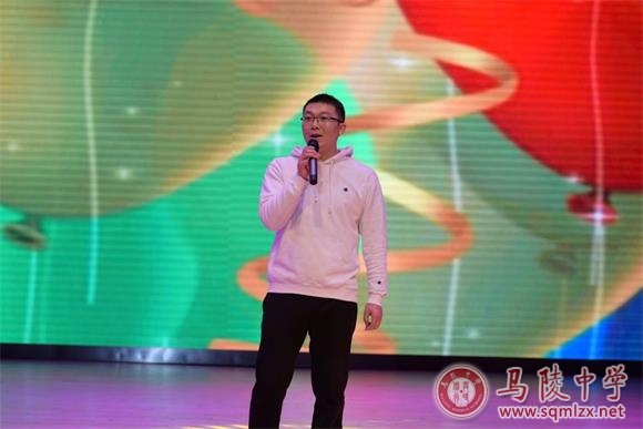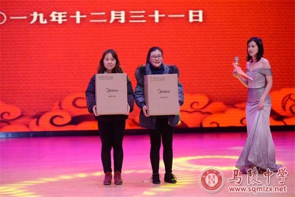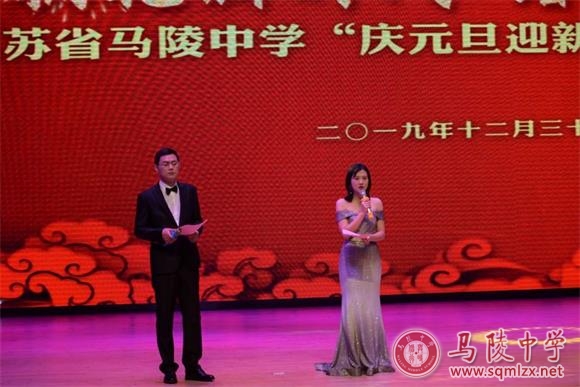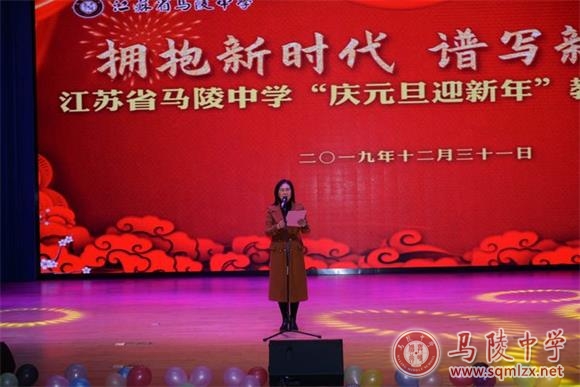 校党委书记张美华致辞。张美华代表校领导班子向全体教职工致以节日的问候和美好的祝愿。张美华总结了2019年学校在教育教学等方面所取得的成绩,并希望全体教职工在新的一年里不忘初心、牢记使命,共同谱写马陵中学新的篇章。