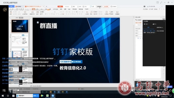 马陵中学“停课不停学”工作开展以来,学校引领广大教师通过多种现代化技术手段进行线上授课和辅导。此次学校组织的培训进一步提高了教师线上教学平台的使用水平,为学校线上教育教学质量进一步提升奠定了坚实的基础。
