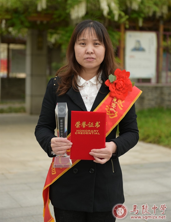 她从教25年,品性质朴,待人诚恳,工作扎实,不懈奋进。坚信“学高为师,身正为范”,她教学中潜心研究,不断超越自我,所带班级成绩一直位于同类班级前茅;她严于律己,处处规范自己的言行,用实际行动给学生树立起榜样。笃信“严师出高徒”,她管理班级纪律严明,雷厉风行,从细小处规范学生的一言一行,像园丁一样辛勤耕耘、精心修剪,引领着学生健康成长、发奋图强。她也是慈母,她的爱深埋心底,像细细的泉水无声地滋润着莘莘学子的心田。
